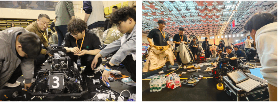 本年度备赛期间,战队创新采用分组攻坚模式,设立步兵、英雄、哨兵三大技术组,分别在步兵机械结构优化、英雄机器人系统集成、自主目标识别算法等关键领域攻克多项技术难点。其中英雄机器人整机开发项目与自主瞄准系统的实战应用,标志着团队历经半年的技术攻关取得突破性进展。在比赛中,“猛码战队”成员们凭借扎实的专业知识、出色的动手能力和默契的团队协作,克服重重困难,稳扎稳打,最终取得佳绩。赛后,团队成员参加青年工程师论坛与其他参赛队伍交流经验,分享技术,为下届赛事做好准备工作。
