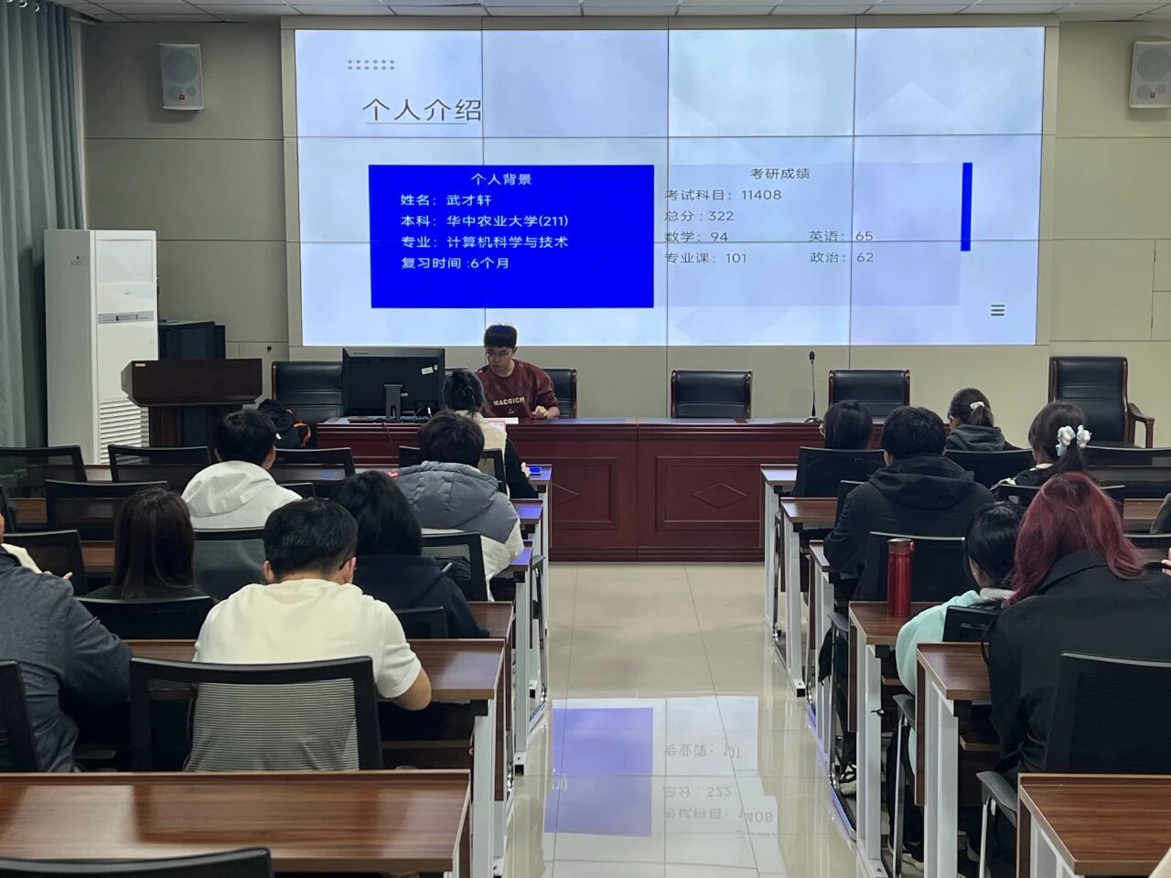 为帮助本科生科学规划考研路径、掌握高效备考方法,太阳成集团tyc234cc于10月23日组织举办了考研经验分享会。本次活动邀请到2025级硕士研究生武才轩、许文睿、魏建明三位同学进行经验分享。活动旨在通过朋辈引领的方式,为备战研究生考试的同学们提供多角度、实用性的指导,营造互学共进的积极氛围。