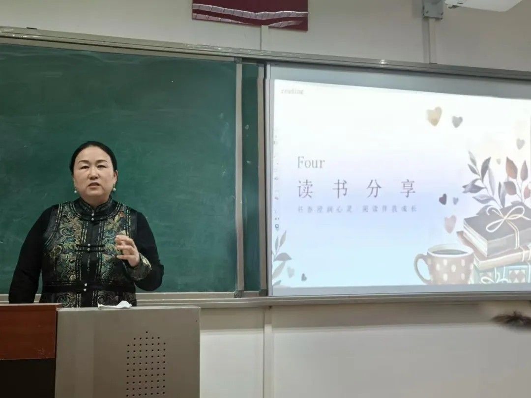 乌日其木格书记为同学们分享了《迎秋的草尖》并在总结时谈到,本次分享会搭建了思想碰撞的有效平台,通过师生共读既深化了专业认知,也拓宽了人文视野。她希望班级内持续推进"书香校园"建设,经常性开展主题读书活动,鼓励员工在数字时代保持深度阅读习惯,将经典著作中的智慧转化为成长养分。